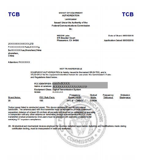 美國聯邦通信委員會FCC-ID證書