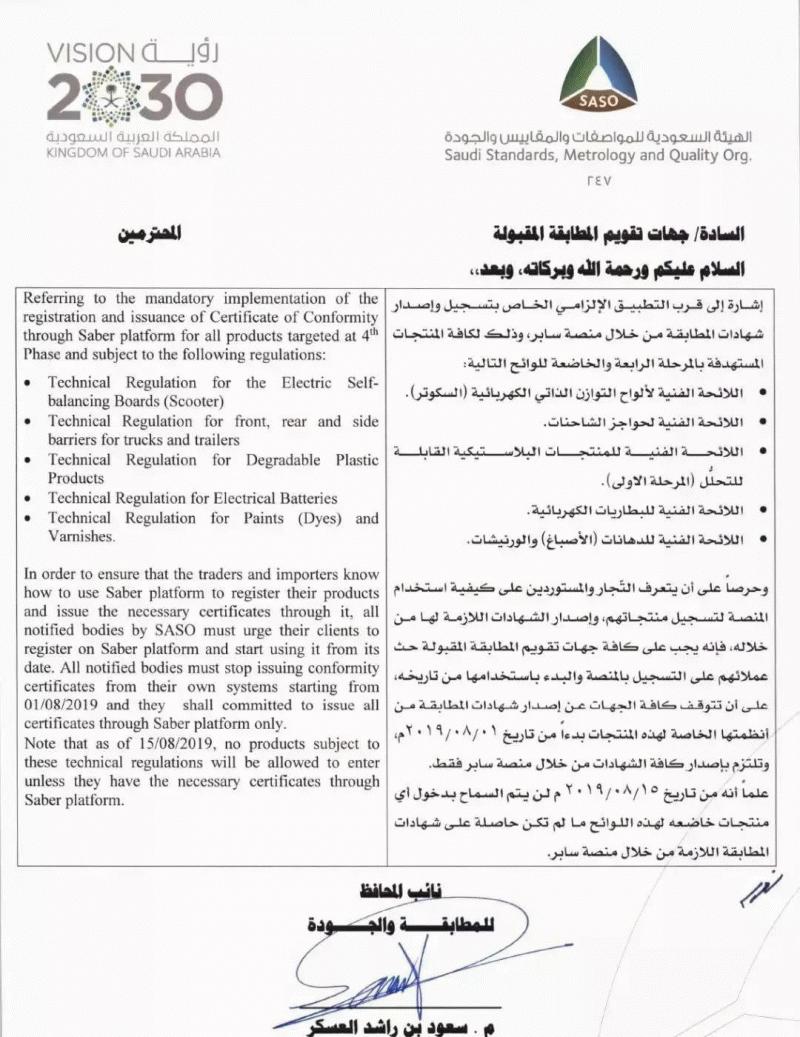 沙特SABER證書
